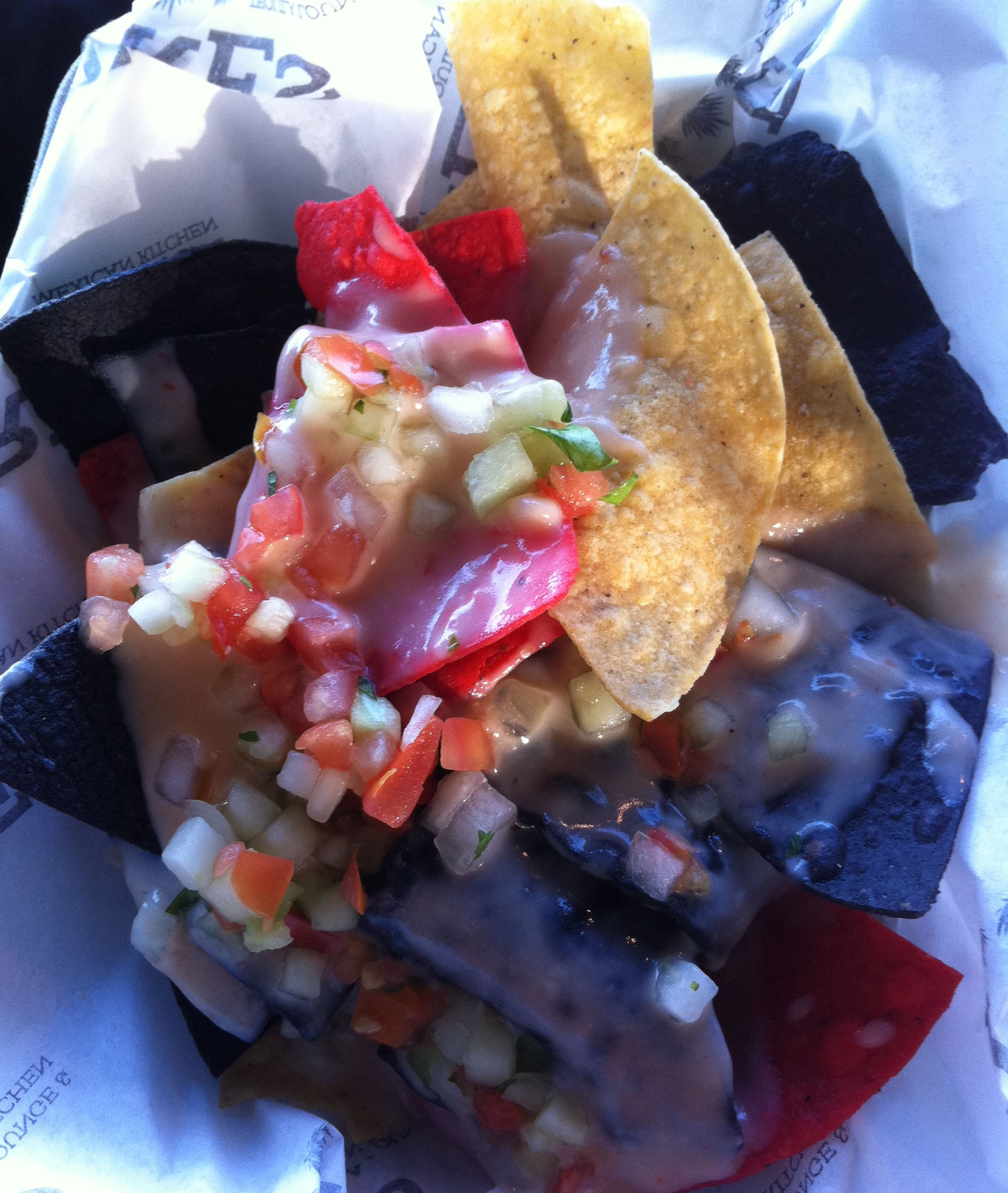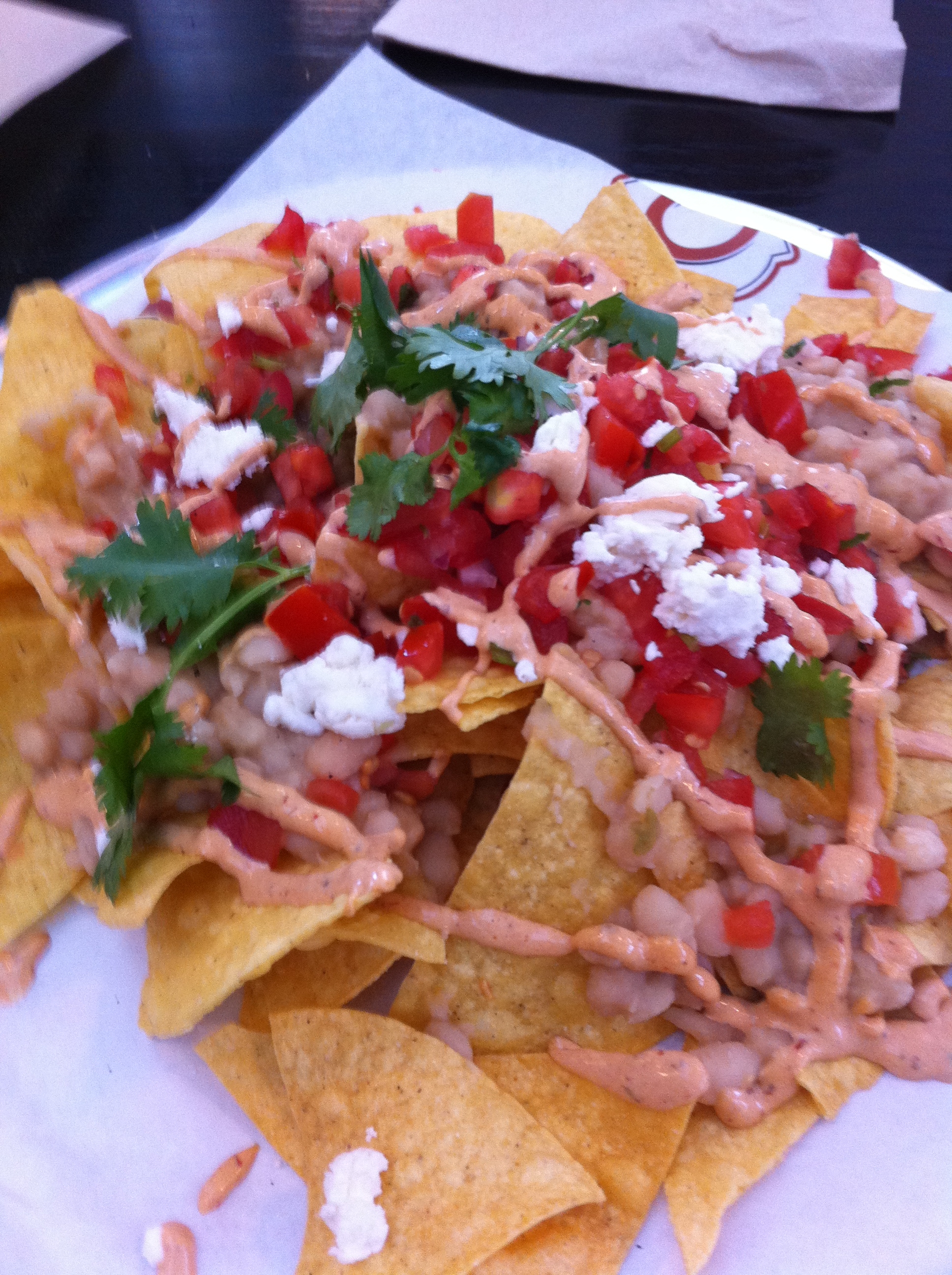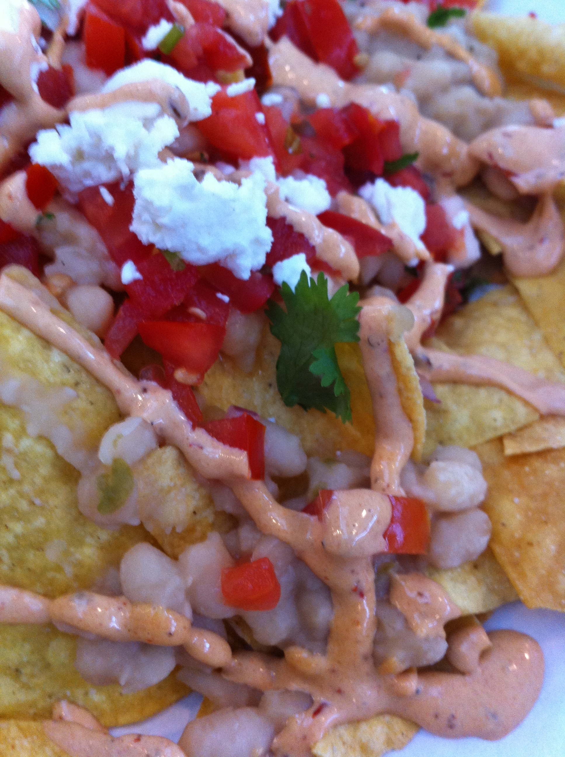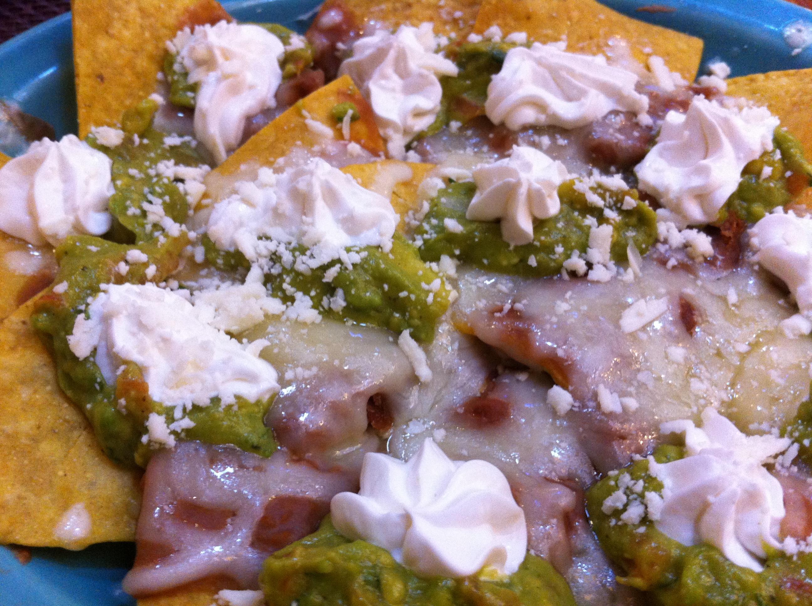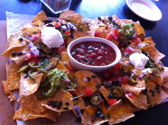 But don’t you fret, my nacho readers, it would take a lot more than high dish sides to keep me from diving into these nachos head first. And, if I do say so myself, they were super tasty! The flavors blended nicely and I was really pleased with the combination of both refried pinto and whole black beans in the same bite. The toppings were all incredible and the pico de gallo provided quite a spice punch. I didn’t second guess my decision to omit jalapenos for a second. I’m about as happy as I can get when I have a mouthful of nachos covered in green onions, black olives, guacamole and pico de gallo.
