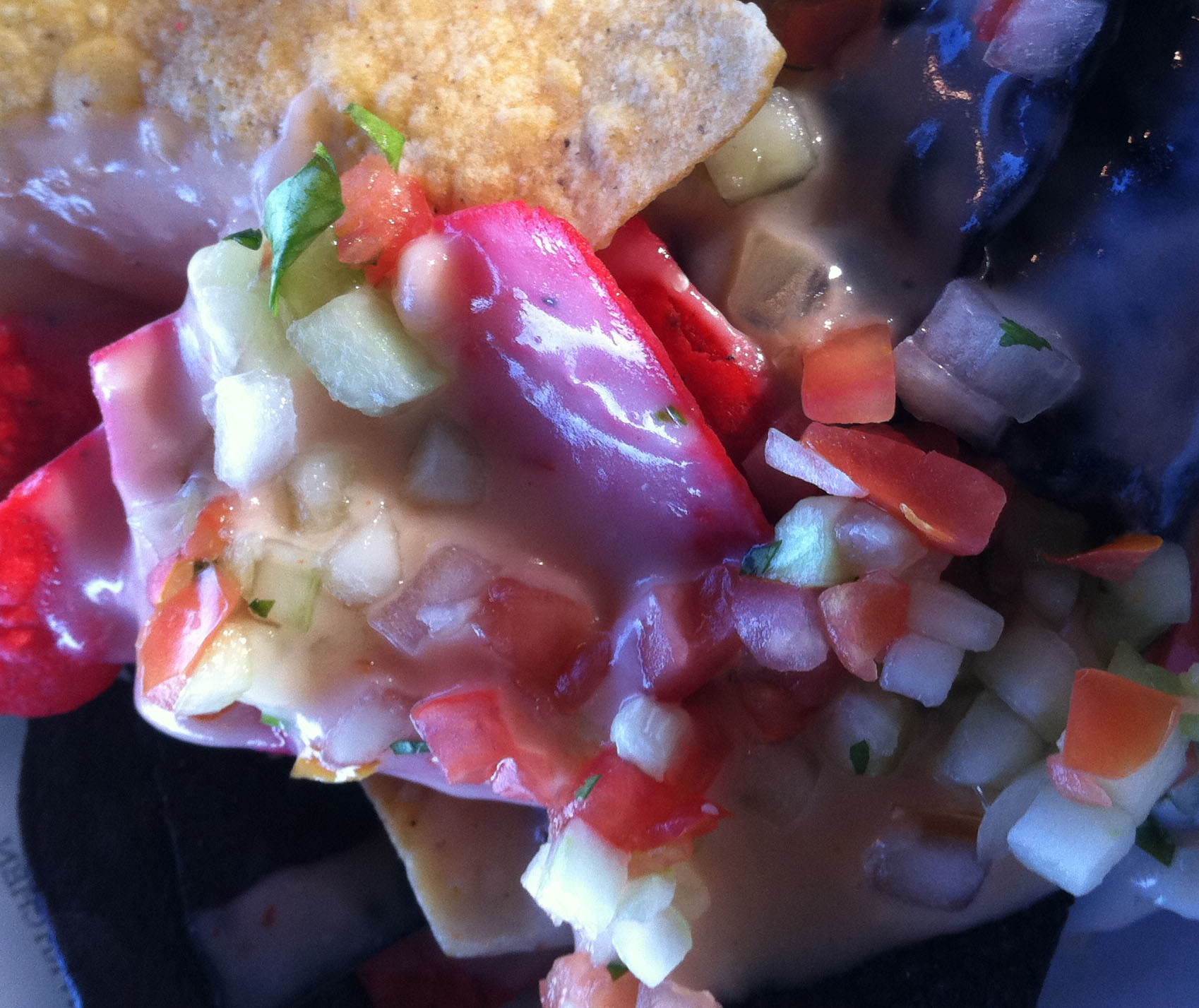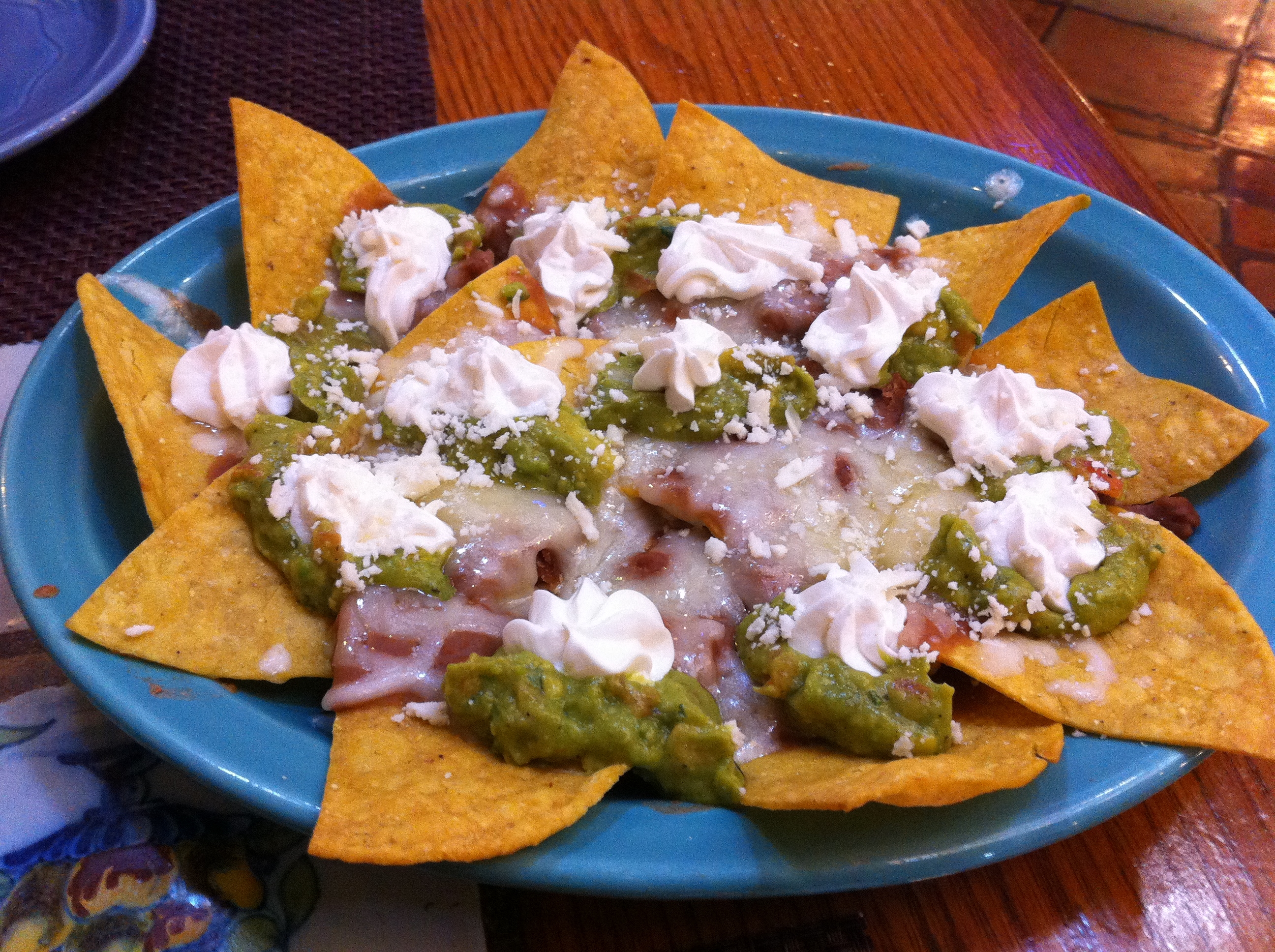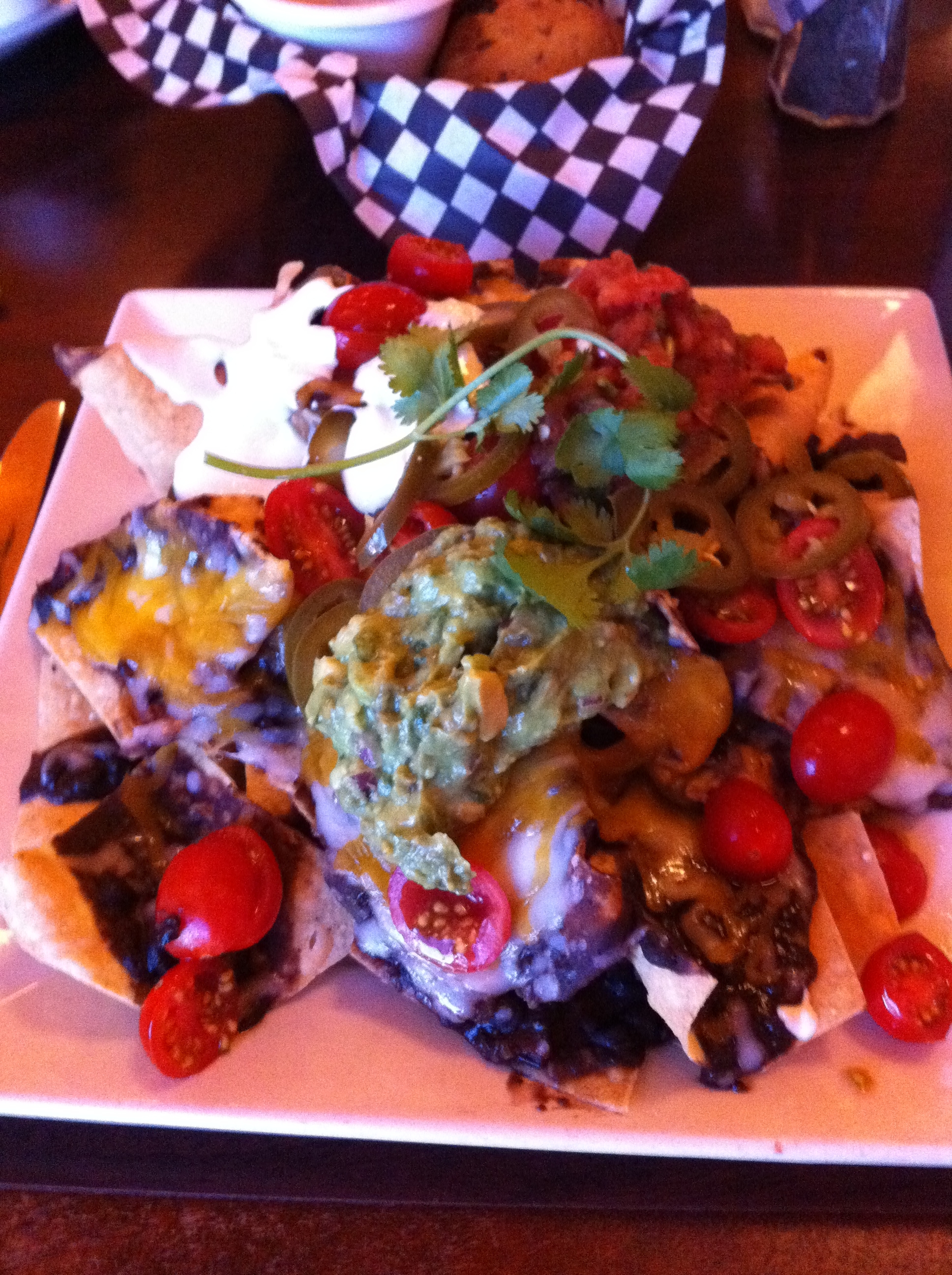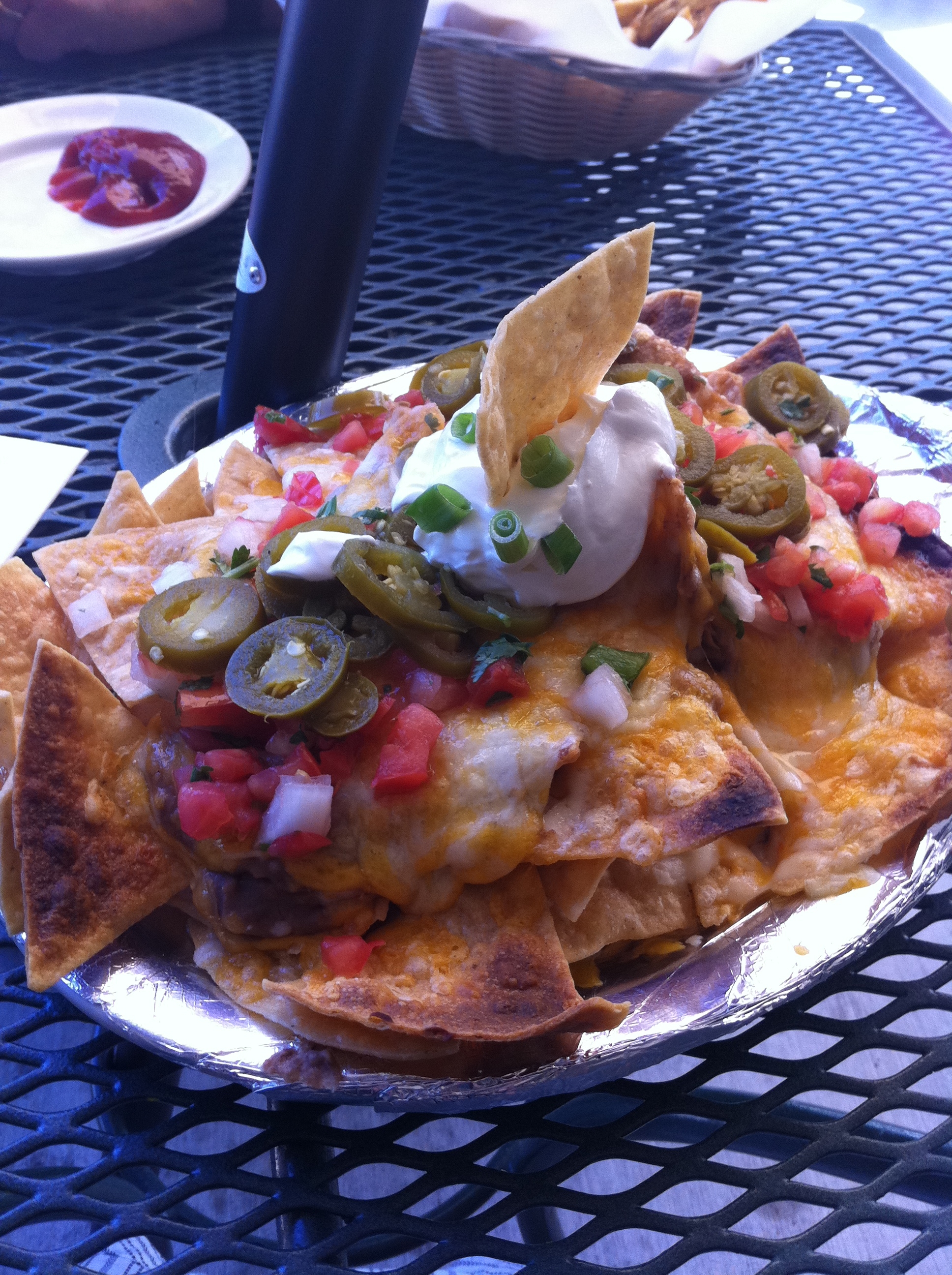 But don’t you fret, my nacho readers, it would take a lot more than high dish sides to keep me from diving into these nachos head first. And, if I do say so myself, they were super tasty! The flavors blended nicely and I was really pleased with the combination of both refried pinto and whole black beans in the same bite. The toppings were all incredible and the pico de gallo provided quite a spice punch. I didn’t second guess my decision to omit jalapenos for a second. I’m about as happy as I can get when I have a mouthful of nachos covered in green onions, black olives, guacamole and pico de gallo.